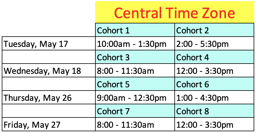 Just find the appropriate day and mark your calendar accordingly, then use either the session link (which you can copy/paste into your calendar meeting) or the Join Button above.